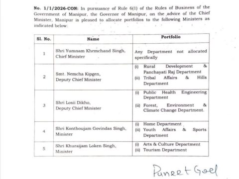 Imphal, March 4: The Government of Manipur on Wednesday issued a notification allocating portfolios to members of the newly formed…