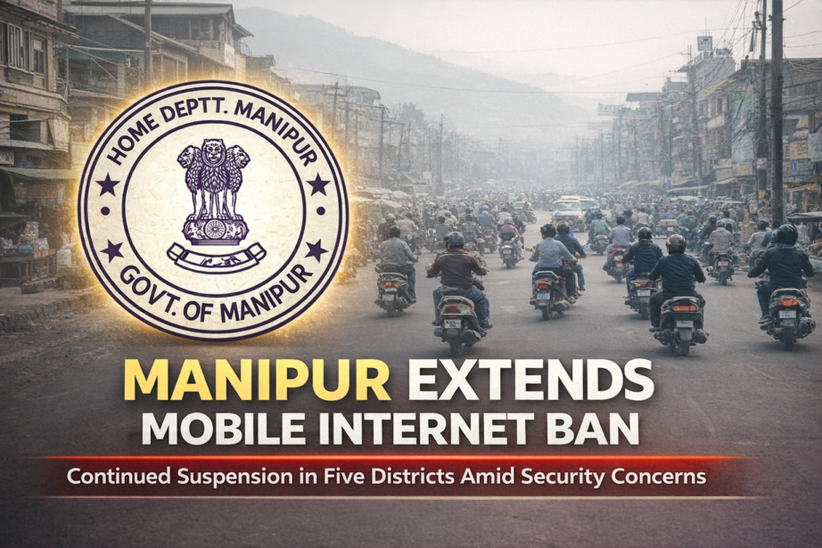 Imphal, April 10, 2026: The Government of Manipur has extended the suspension of mobile internet and data services in five districts—Imphal West, Imphal East, Thoubal, Kakching, and Bishnupur—for an additional two days, starting from 2:00 PM on April 10, 2026.