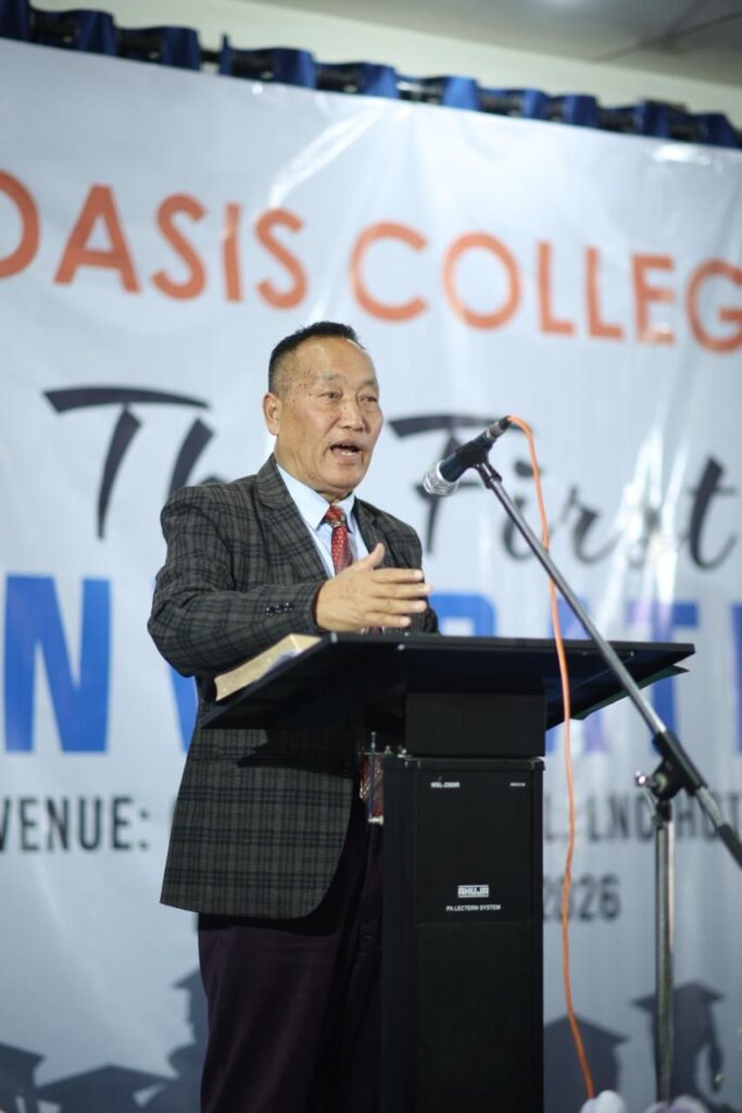 The ceremony commenced with a formal academic procession, setting a solemn and celebratory tone. The programme was compered by Miss Natty Kipgen and Sir Anthony Touthang. An invocation prayer was offered by Rev. Henkholen Kipgen, followed by a musical performance by the Oasis Choir, who presented the song “Count Your Blessings Day by Day.”